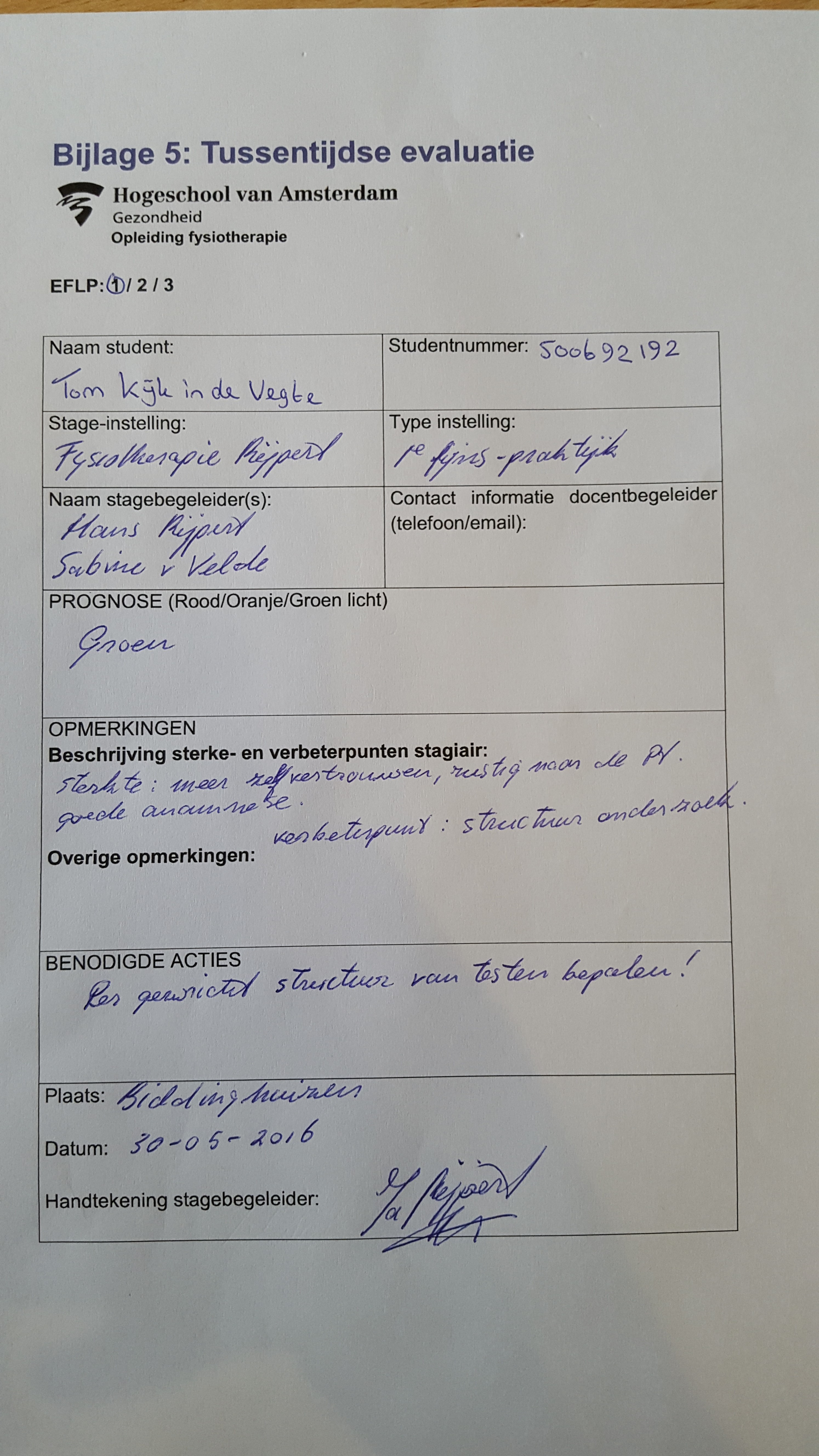 Tijdens de IF lessen heb ik vaak een screening of anamnese moeten uitvoeren waarbij ik professioneel moet communiceren en handelen. Hiervoor kreeg ik telkens feedback van de leerkracht en medestudenten.