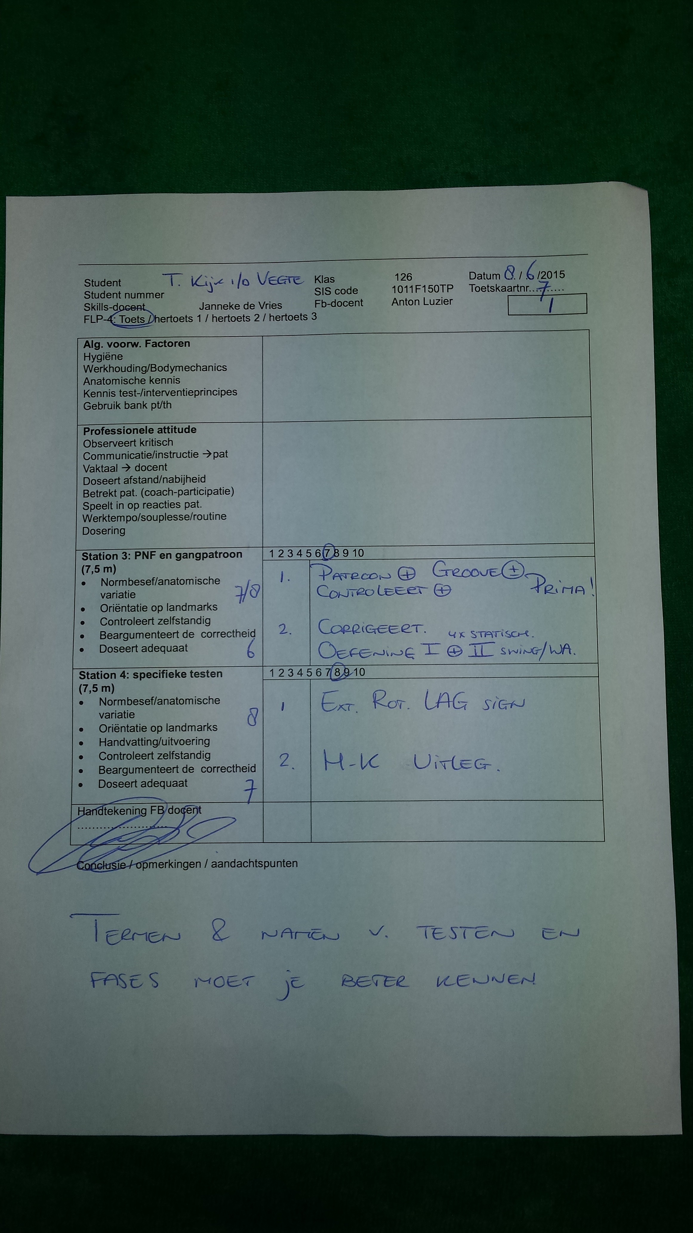 Uiteindelijk heb ik in FLP1, FLP2 en FLP3 een D&T toets uitgevoerd en een Skills toets (zie toets uitslagen onder het kopje ‘opleiding fysiotherapie’ FLP-1, FLP-2 en FLP-3). Alle drie de D&T toetsen heb ik behaald. Voor Skills heb ik alleen de toets van FLP1 behaald.