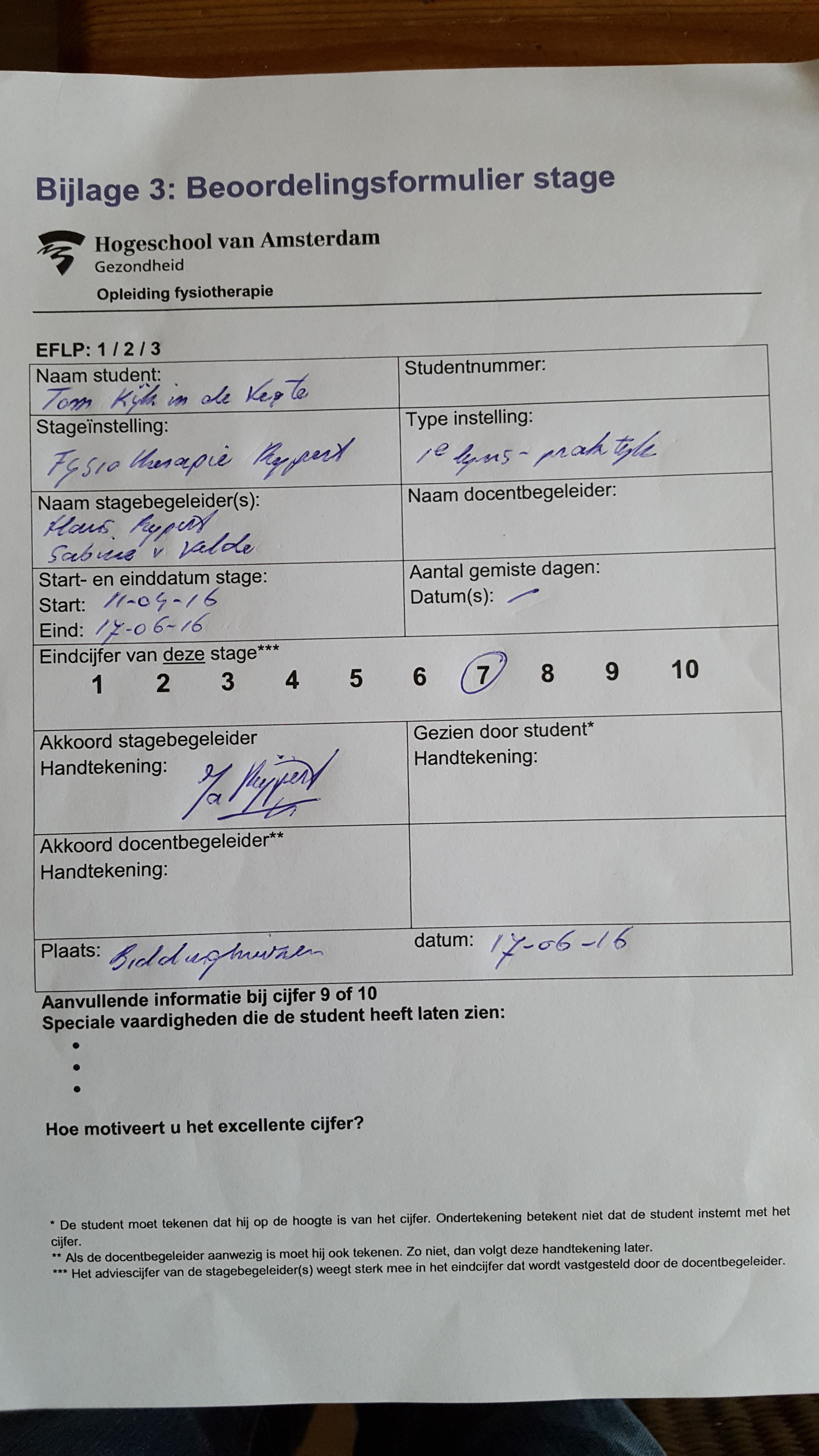 Beoordelings formulier EFLP-1
